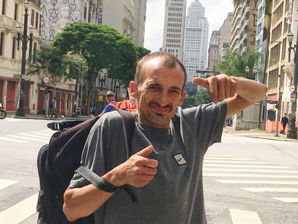 Este rapaz se aproximou de mim na avenida São João e pediu: