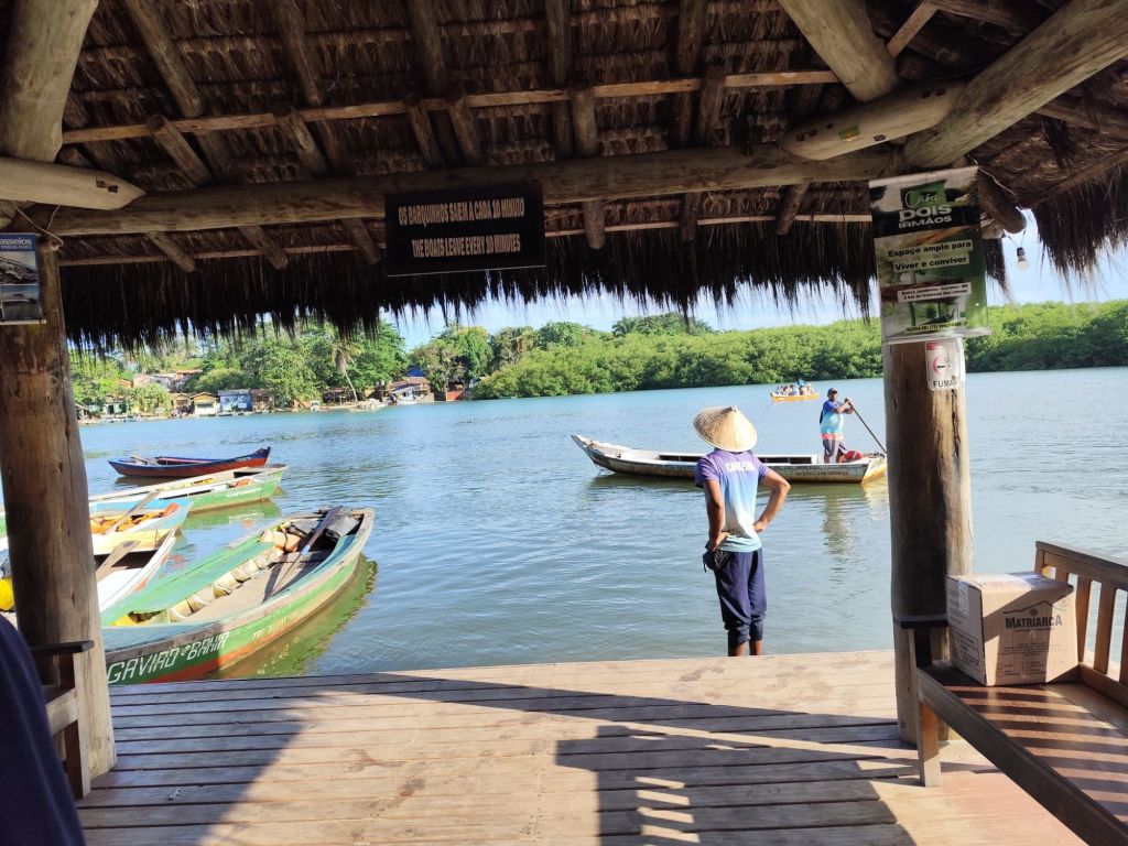 Levo um tempo pra perceber o zunido de conversa atrás de mim, entre o motoqueiro branco e o barqueiro negro sobre cujo boné lê-se “marinheiro”.