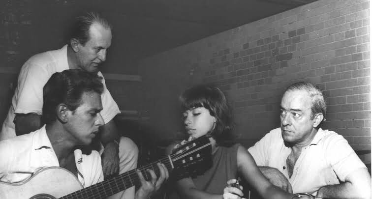 Com o produtor Aloysio de Oliveira (no alto), Carlinhos Lyra e Vinícius de Moraes