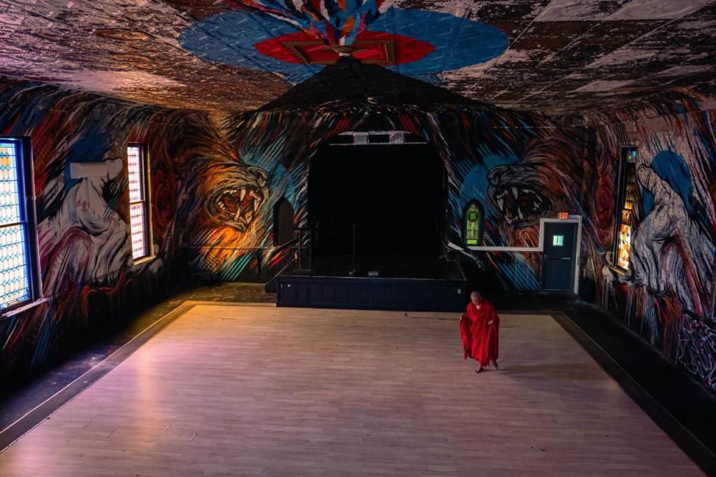 Não conhecia o diretor, portanto não sei o que fazia antes dela série “Walker”. Mas este filme não me pareceu difícil de ver, até pelo contrário. Ao fundo e ao redor, enquanto Xuanzang caminha, está Washington DC, o obelisco tanto quanto a estação de trem, entre outras paisagens amplas. Ninguém o interrompe, às vezes nem o percebe, exceto alguns turistas que param para fotografar. Os dias podem ter sol ou garoa, pode haver piscinas de água ou regatos com pedras a transpor, e o monge estará sempre a caminhar do mesmo jeito. O filme é isso, sem música exceto no final, mantendo o barulho original do lugar – às vezes pessoas falam e os passarinhos cantam, às vezes é a chuva que cai.