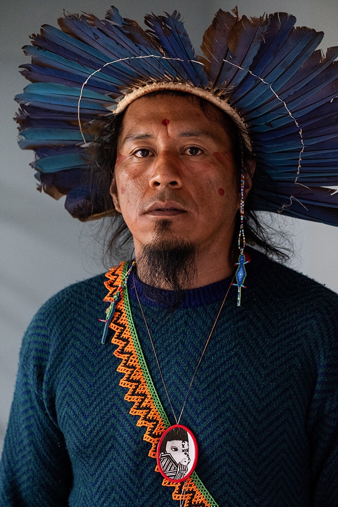 O artista Jaider Esbell, em registro fotográfico da Agência Ophelia/Itaú Cultural