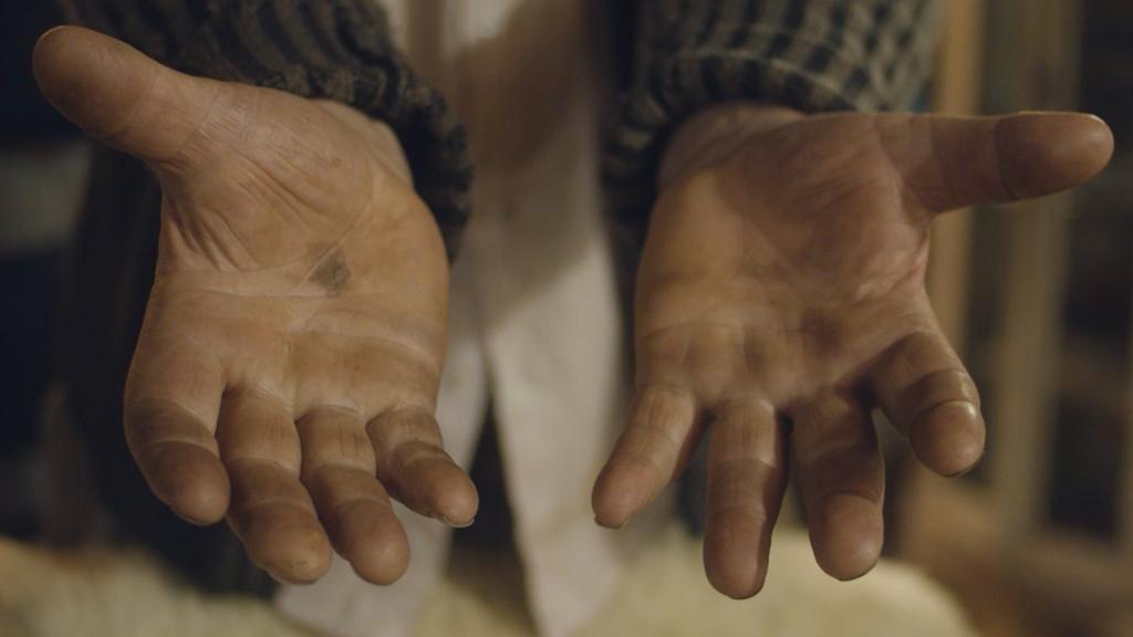 As mãos do trabalhador sem-terra Jussimar Luís Dalenagare, presentes no documentário De quanta terra precisa o homem?
