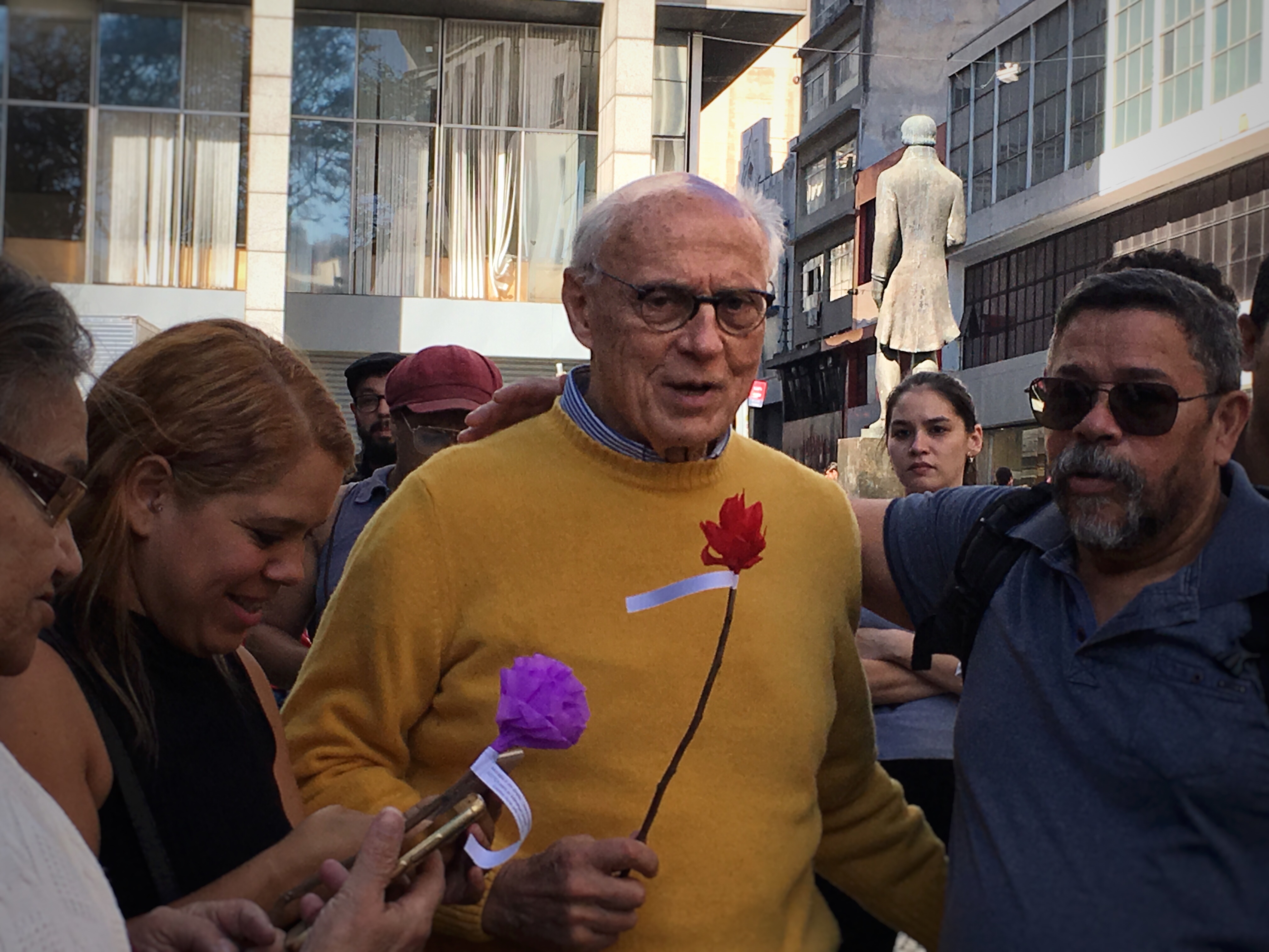 desta vez não cantou porque tinha “responsabilidade”, como disse, de ir ao velório do companheiro juarez soares. falou primeiro que todo mundo, pegou um papel pra não errar o nome dos presos, disse que pedia a sensibilidade de doria e bolsonaro para a injustiça das prisões (o suplicy de sempre), garantiu que todos trabalhavam pra resolver isso… e terminou com um lula livre, aplaudido com ênfase e carinho.